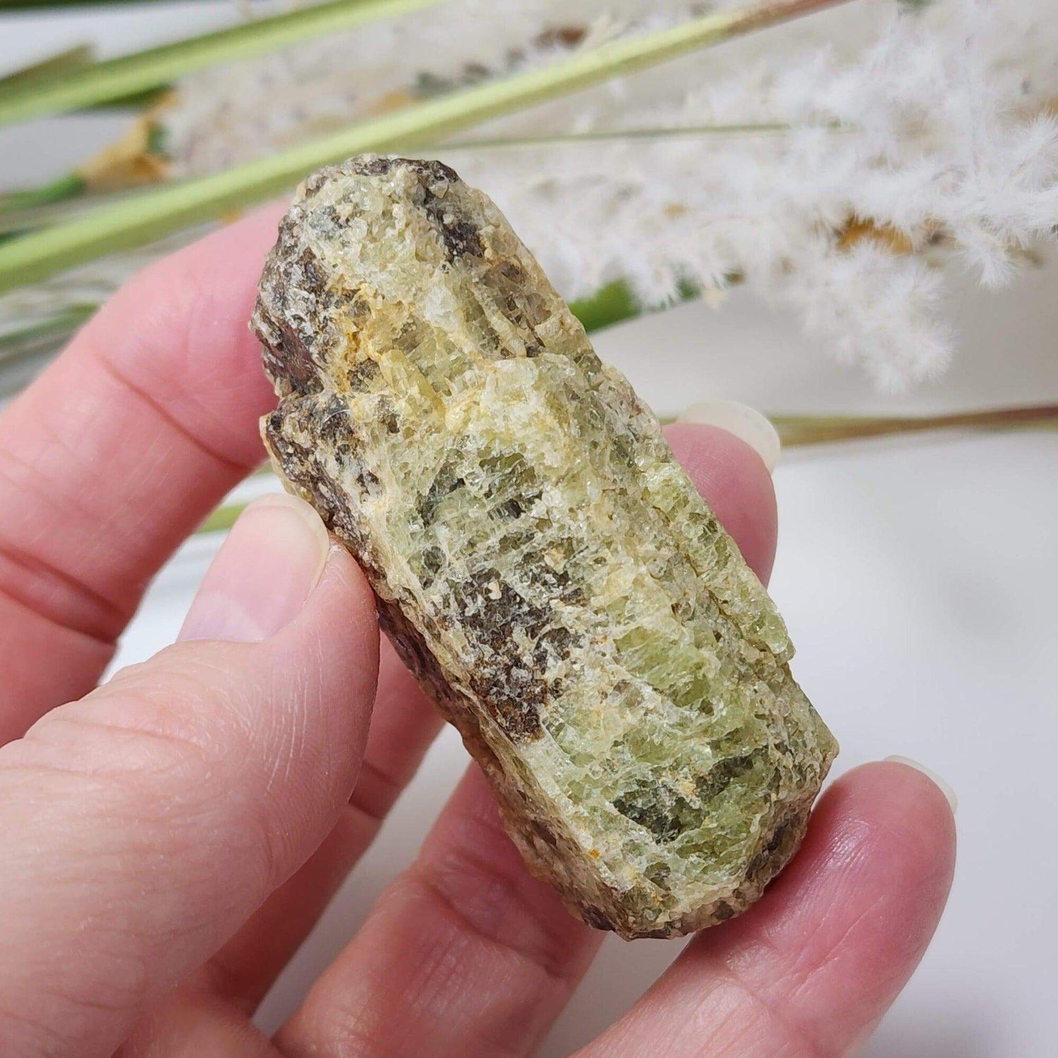 Apatite is believed to possess healing properties and is associated with creativity, self-expression, and personal growth. It is thought to enhance communication skills, stimulate intellect, and promote clarity of thought.