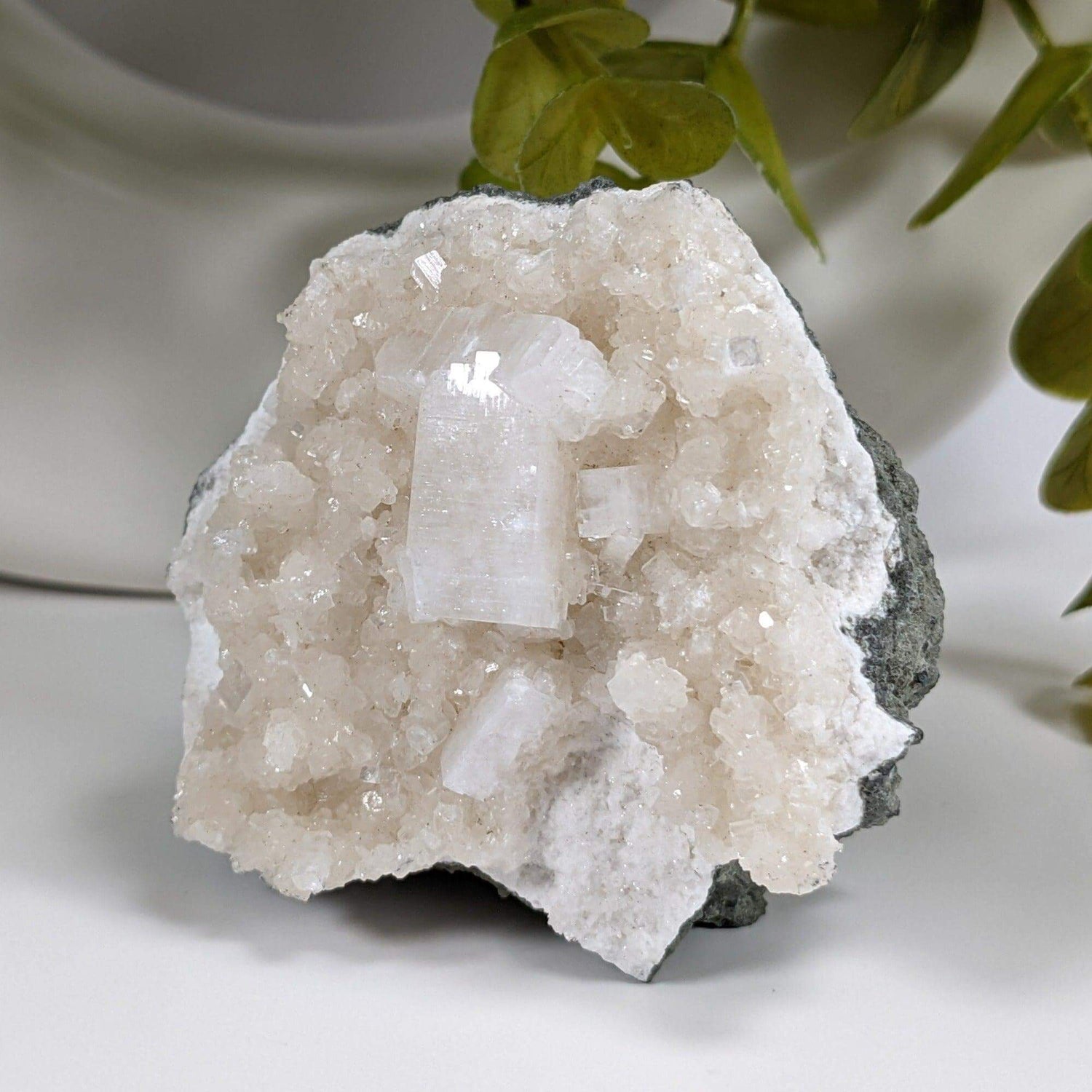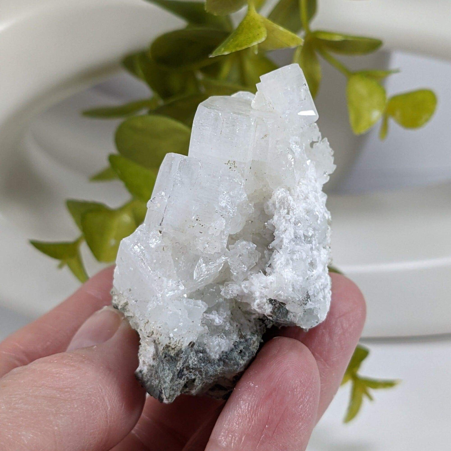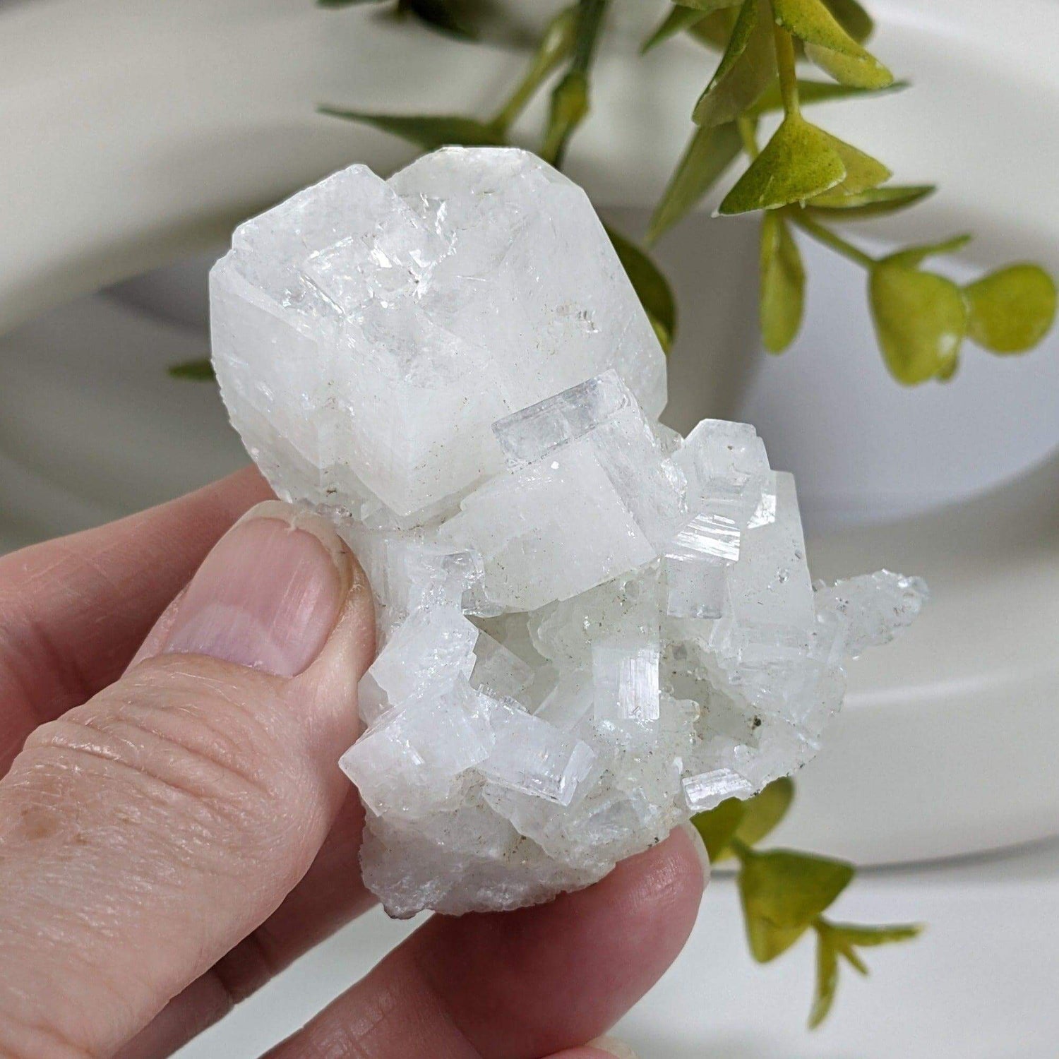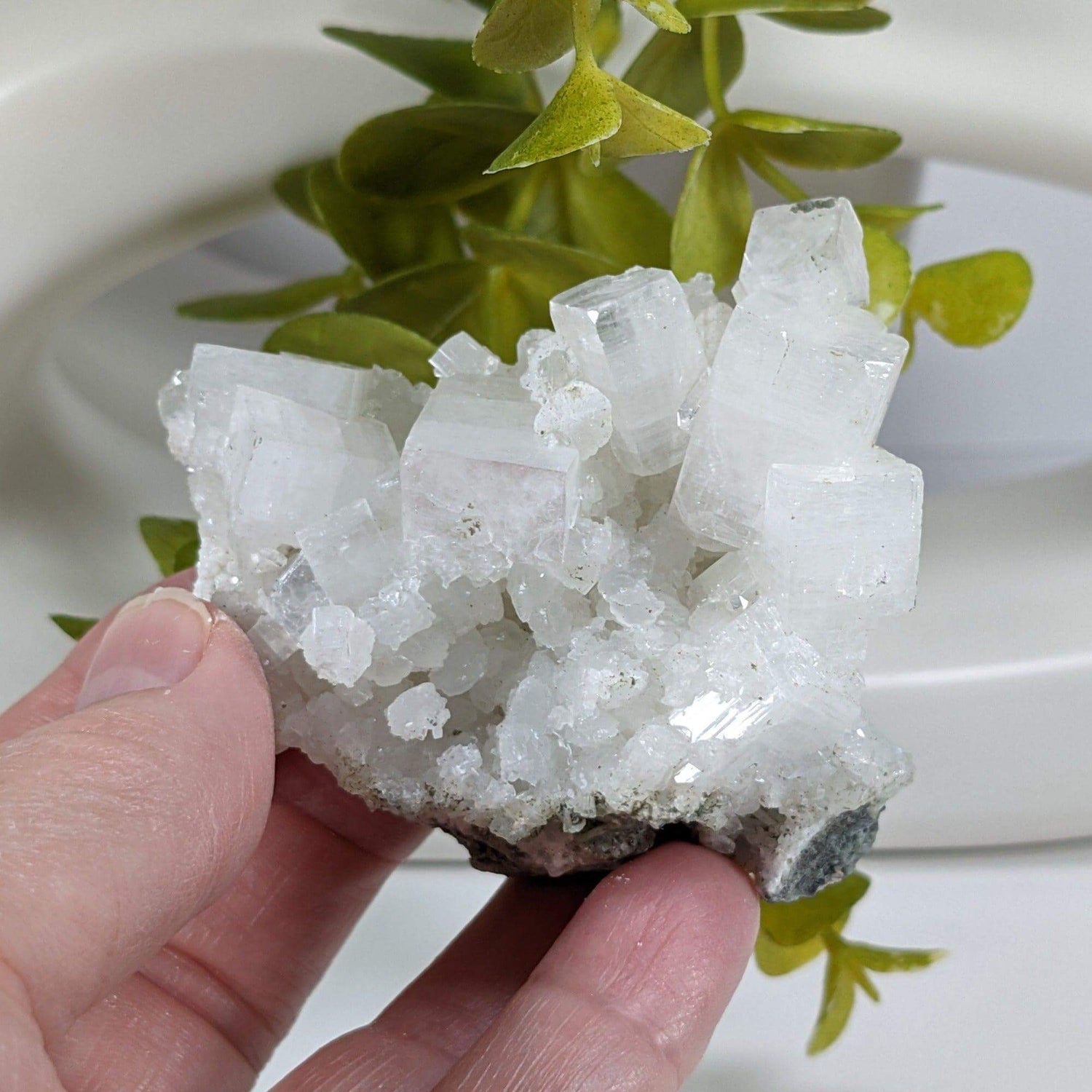 Apophyllite is a mineral belonging to the phyllosilicate group. It is known for its distinctive crystal formations, often occurring in clusters with a unique beauty. Its crystals are usually colorless or white, allowing them to be transparent or translucent. Although, some specimens may exhibit a greenish, yellowish, or pinkish tint due to the presence of impurities. It is believed to promote self-awareness, truth, and emotional release while reducing stress, anxiety, and negative thought patterns..