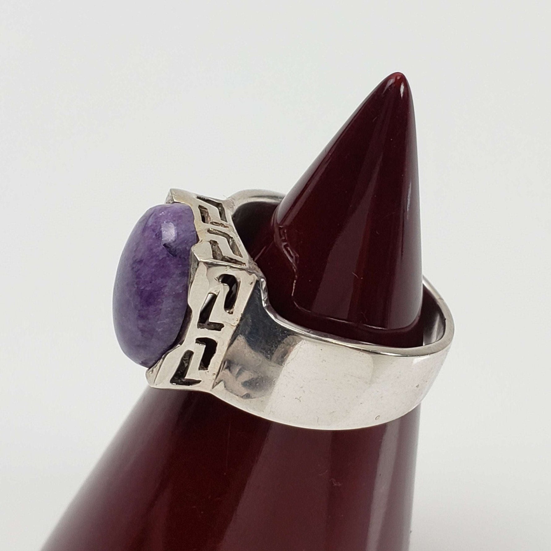 Sugilite Greek Key Ring | Size 9 | 925 Sterling Silver
