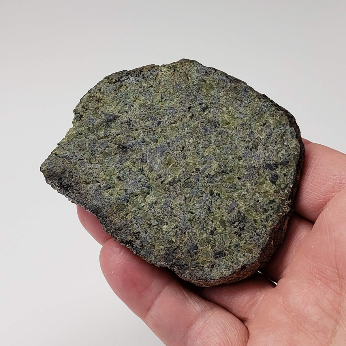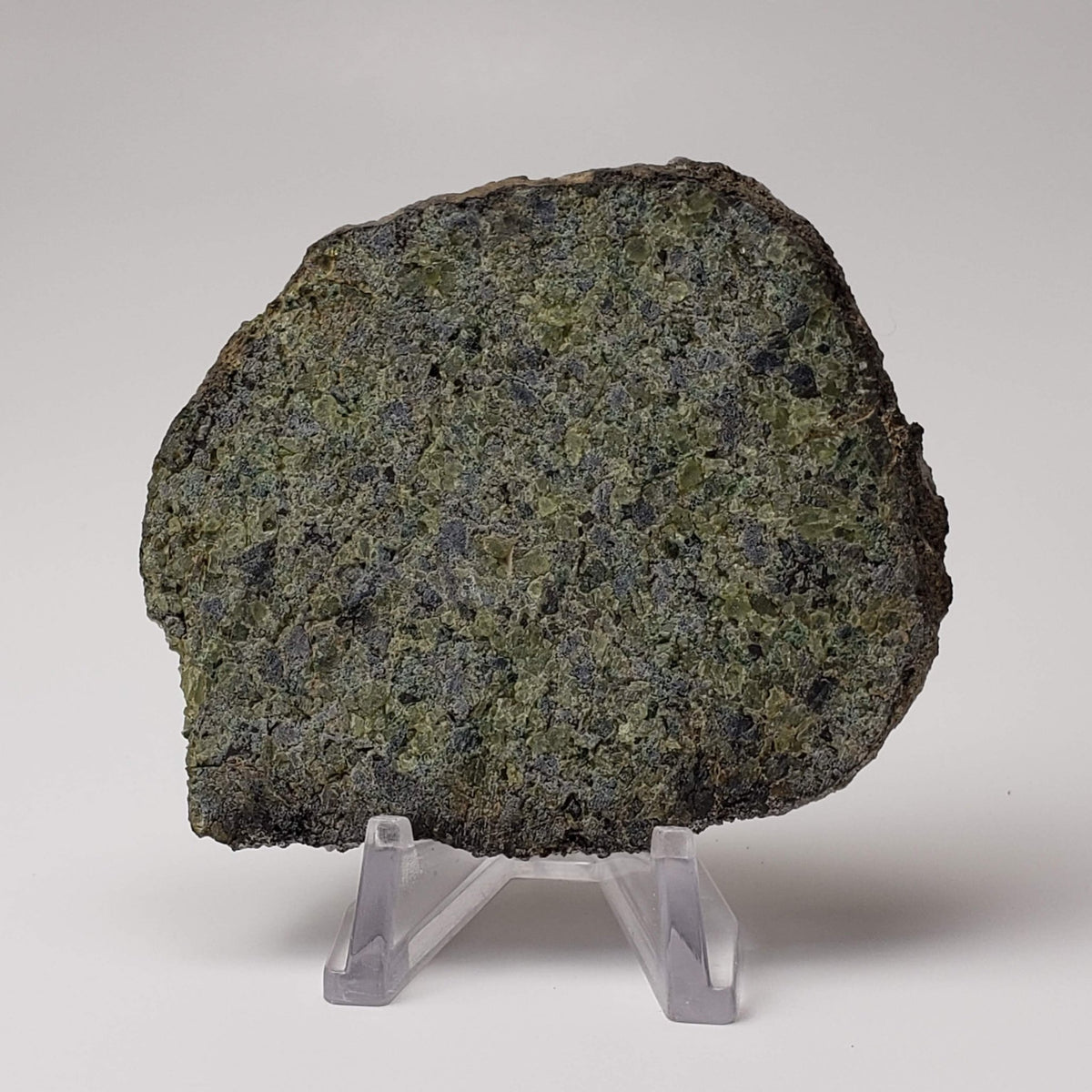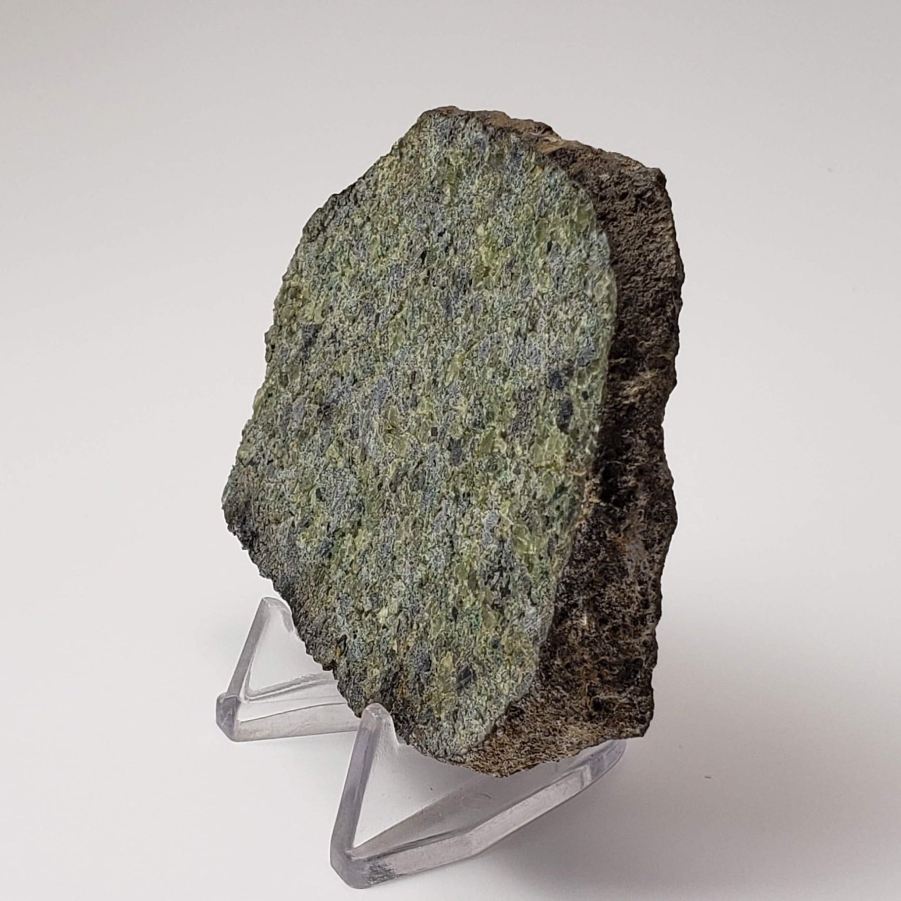 This piece has been cut to showcase the beautiful green olivine crystals. It would be a beautiful addition to any new or existing collection. Comes with a Canagem Collection specimen card. Stand is not included.