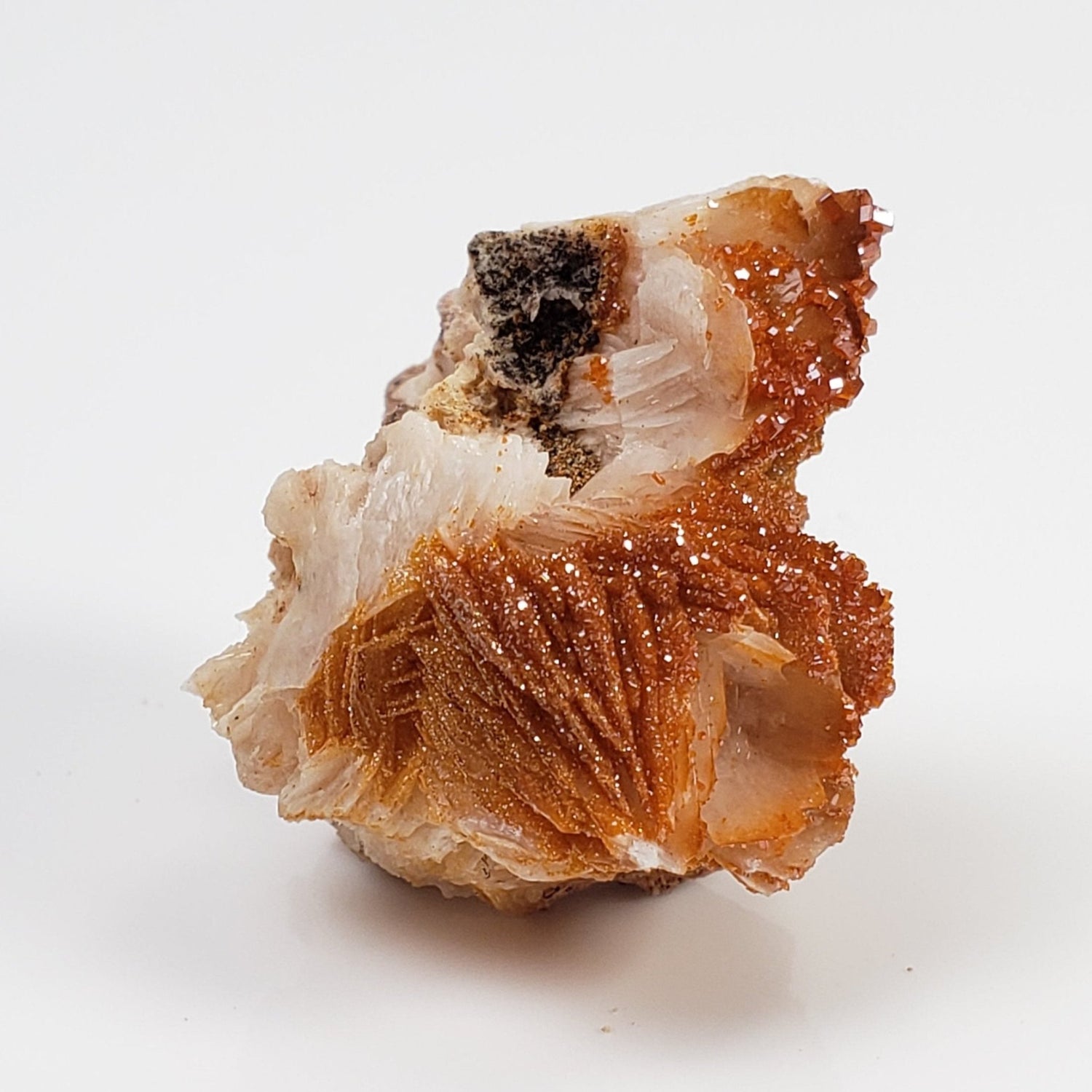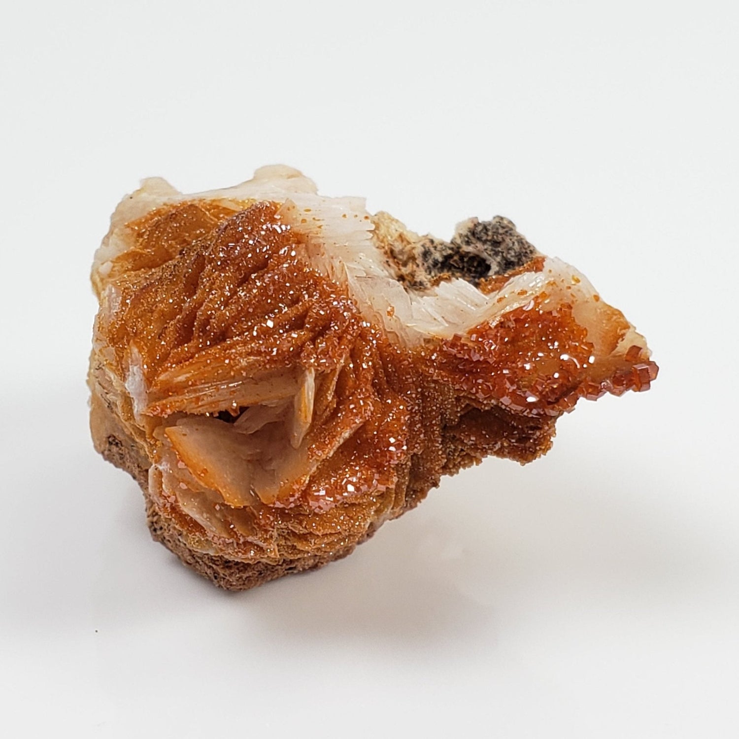 Prix unitaire parVoici une rare combinaison d'une masse d'aiguilles de Scholzite recouvertes de cristaux noirs de Chalcophanite sur matrice d'Australie. La Scholzite est un minéral rare de phosphate de zinc qui forme de beaux cristaux tabulaires blancs brillants et est associé à d'autres phosphates rares. Les spécimens peuvent être particulièrement beaux lorsqu'ils sont combinés avec d'autres minéraux rares tels que la Chalcophanite, qui est un hydroxyde rare de zinc, fer, manganèse.