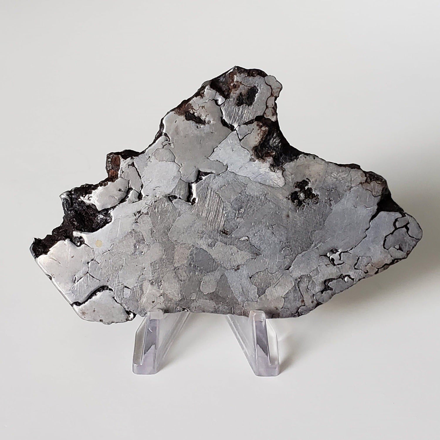 Prix unitaire parCeci est une fabuleuse tranche de météorite stony iron Huckitta PAL de 9,05 grammes classifiée. Cette superbe météorite a été trouvée à Arapunya Stn., Territoire du Nord, Australie en 1924 et le poids total connu est > 2 300 kg. Ses dimensions sont 22,7x18,2x7,6 mm.