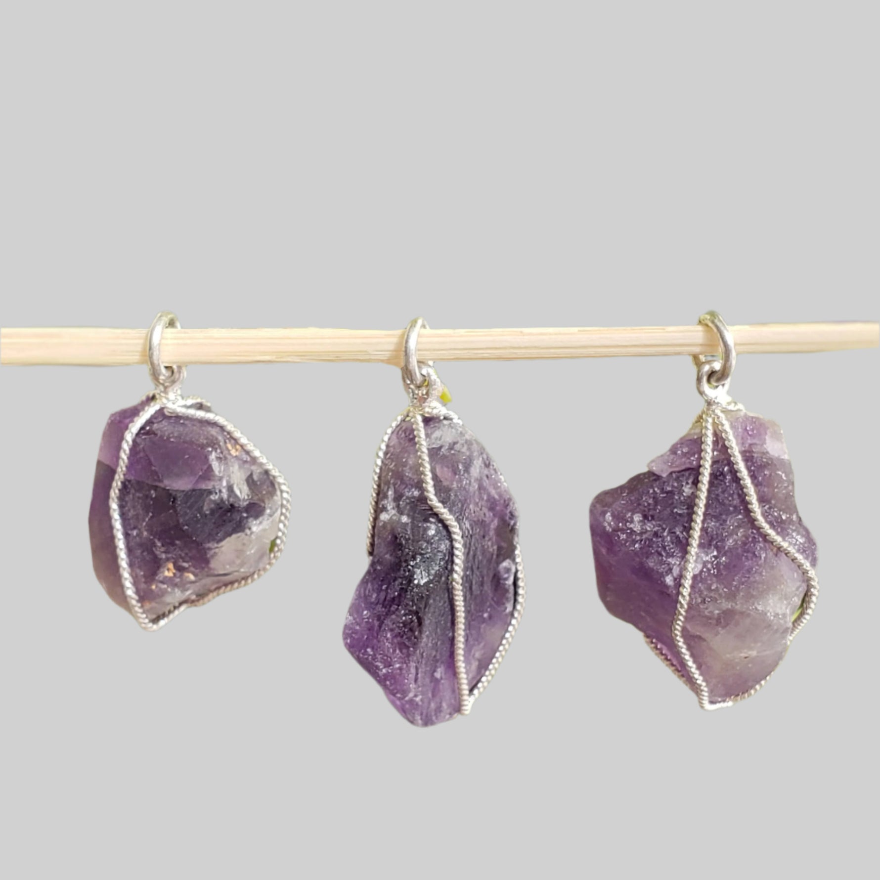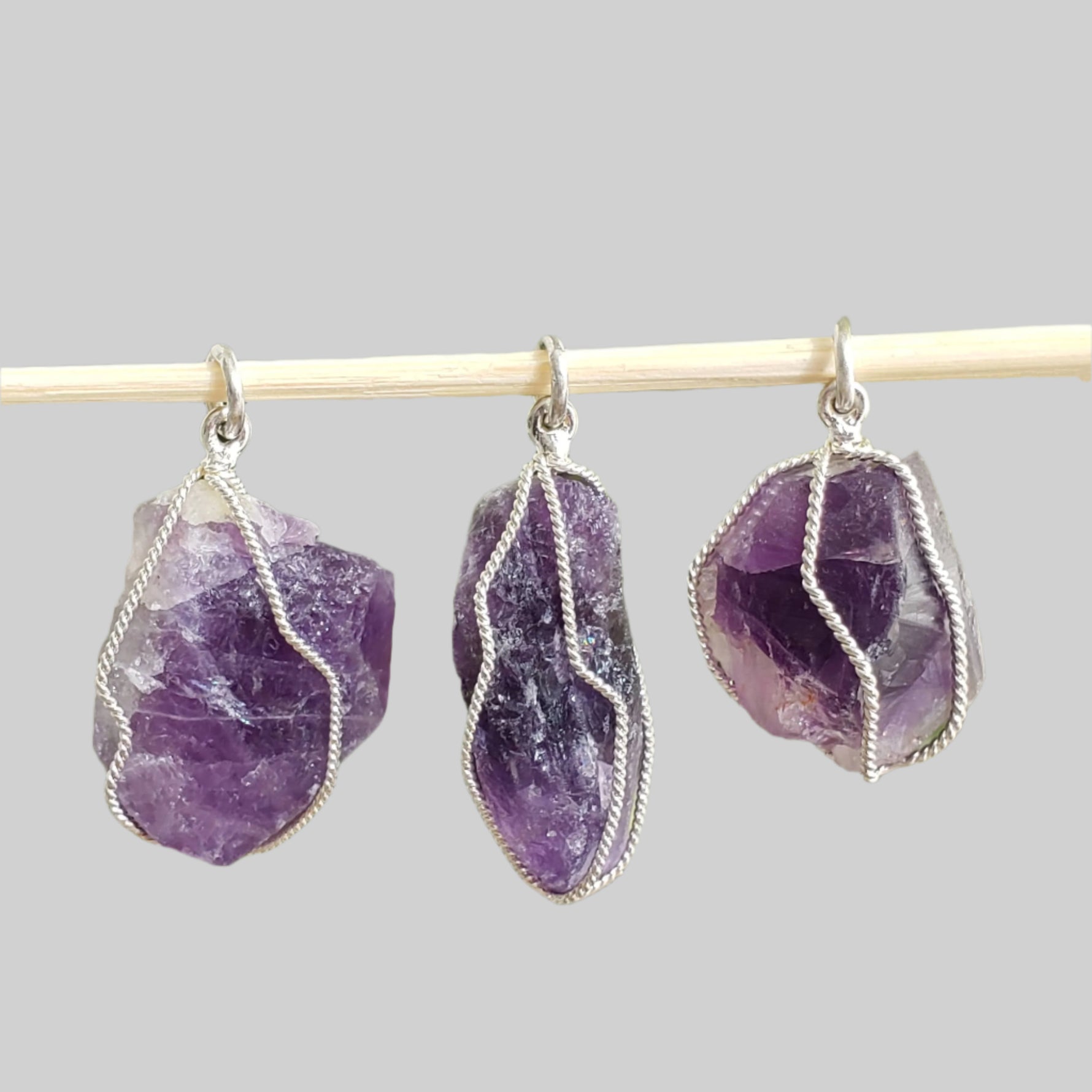 Pendentif Améthyste | Pendentif enveloppé de fil d'argent 925 | Améthyste brute naturelle