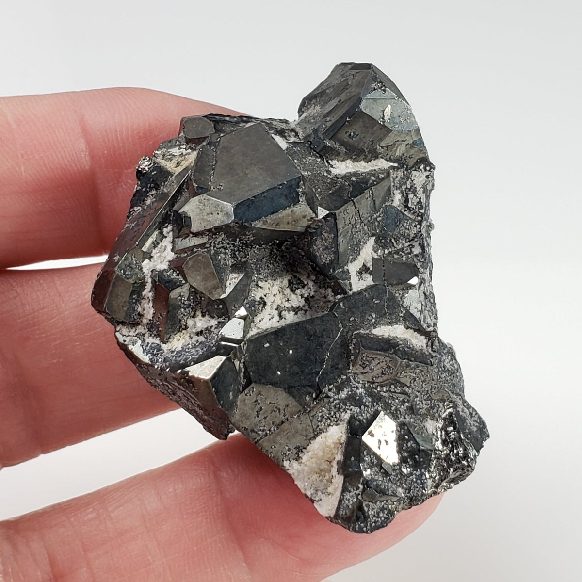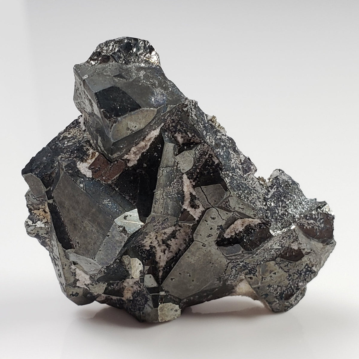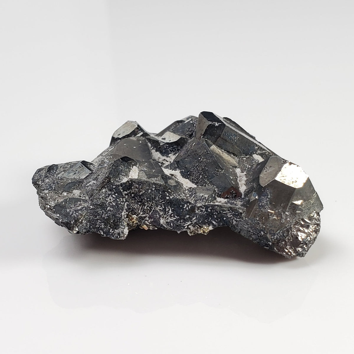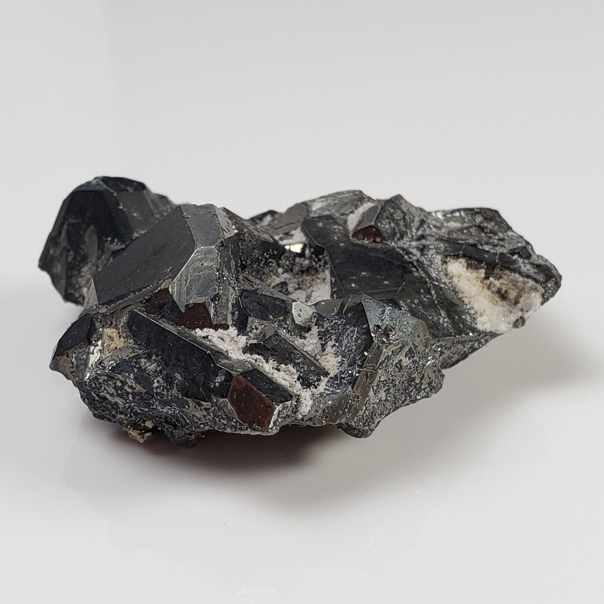 Les cristaux de tétraédrite sont des minéraux fascinants connus pour leur forme tétraédrique distinctive et leur éclat métallique brillant.  Il se forme généralement en cristaux tétraédriques bien définis, qui peuvent être regroupés en amas.  La gamme de couleurs comprend des nuances de gris métallisé, de noir et parfois des teintes rougeâtres dues à la présence de cuivre et d'autres oligo-éléments. La tétraédrite se trouve couramment dans les veines hydrothermales et est souvent associée à d'autres minéraux tels que le quartz, la galène et la sphalérite.