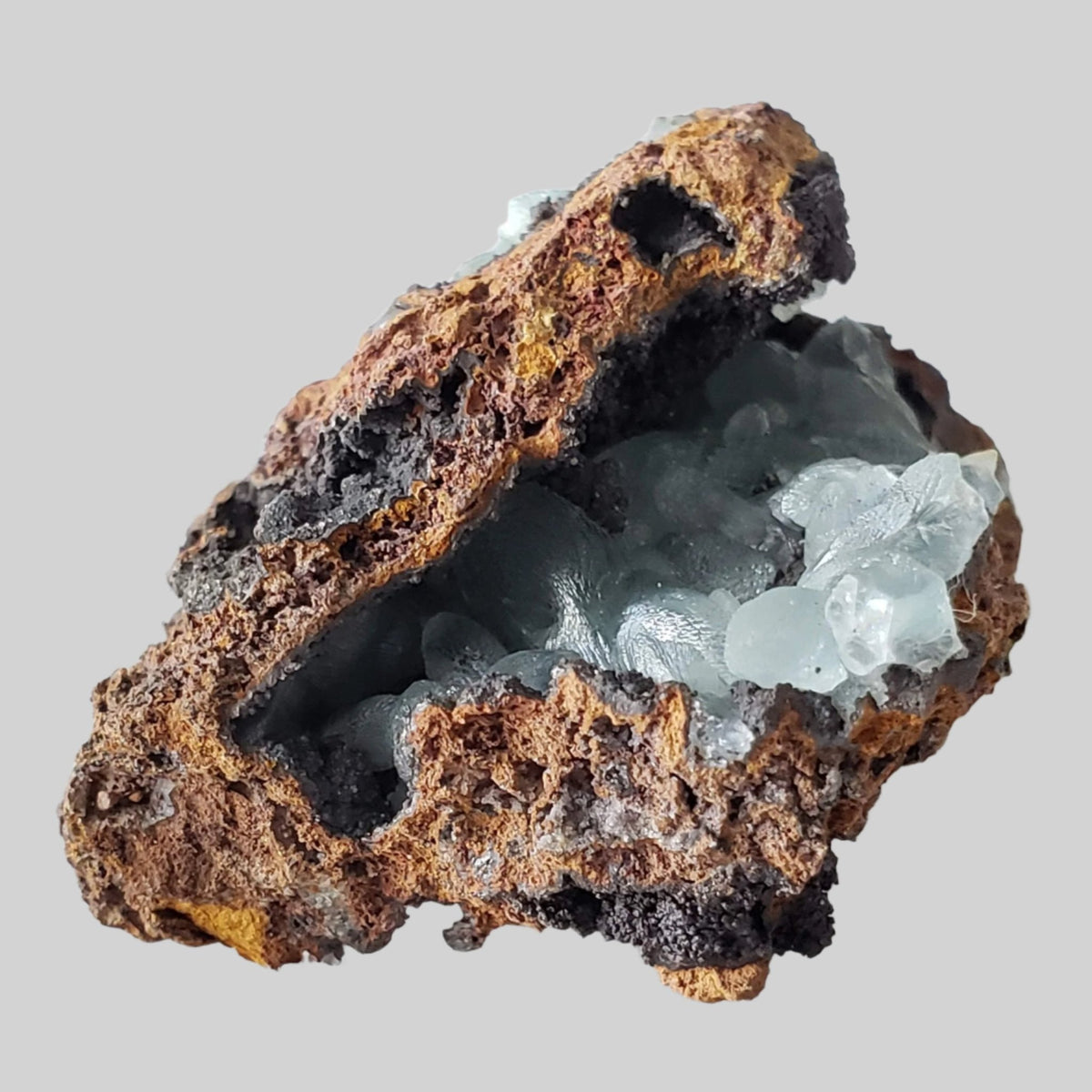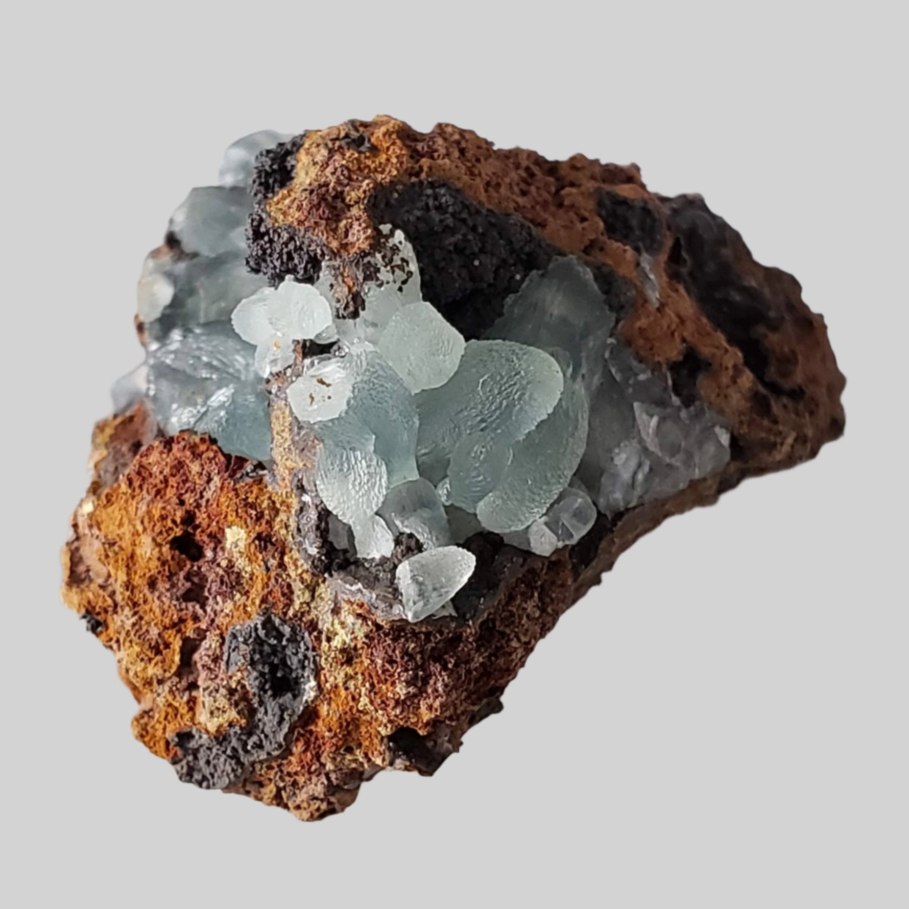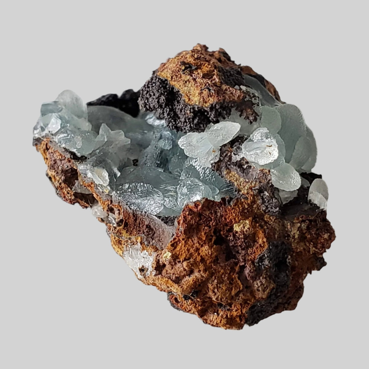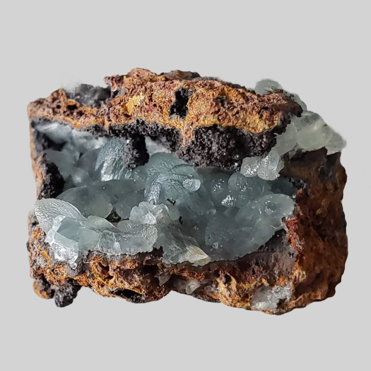 Smithsonite can occur in a variety of colors, including white, grey, blue, green, pink, brown, and yellow. Its coloration is often influenced by impurities present during its formation. The crystals can be transparent to translucent, with a vitreous to pearly luster. It commonly occurs as botryoidal (rounded, globular masses resembling a bunch of grapes) or reniform (kidney-shaped) aggregates. It can also form crusts, stalactites, and stalagmites. Significant deposits of smithsonite have been found in various countries, including the United States, Mexico, Australia, Namibia, Greece, and China.